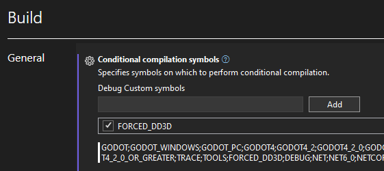 In C#, these tags are not taken into account at compile time, so the Release build will use Runtime checks to disable draw calls. If you want to avoid this, you can manually specify the FORCED_DD3D symbol.
